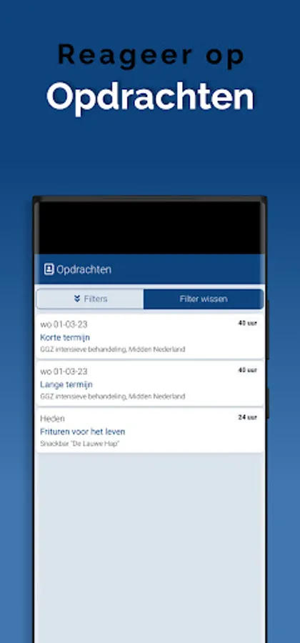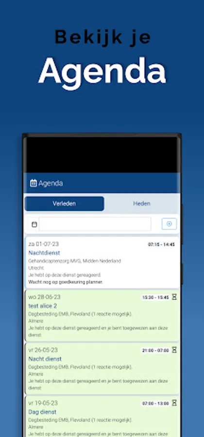 The App is linked to the system, so that information is always up-to-date, via a clear dashboard. In addition, important notifications, such as newly available assignments, arrive on the device via a push notification. That way you don't overlook anything. Changes are also immediately visible, also in the agenda. So you are always in the right place.