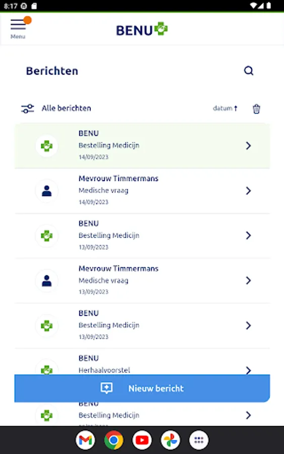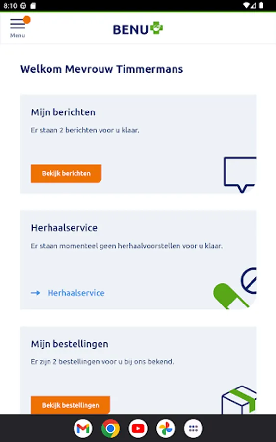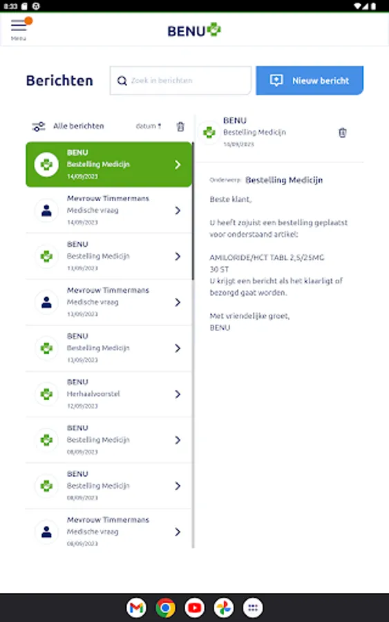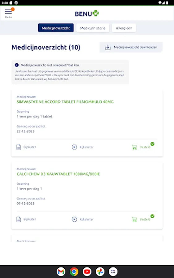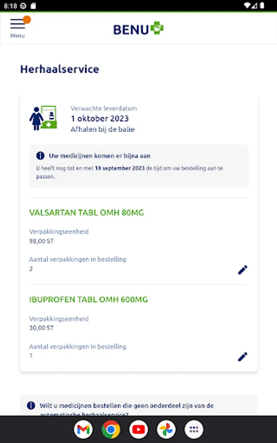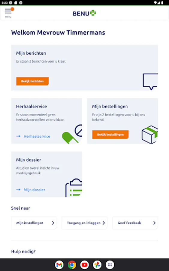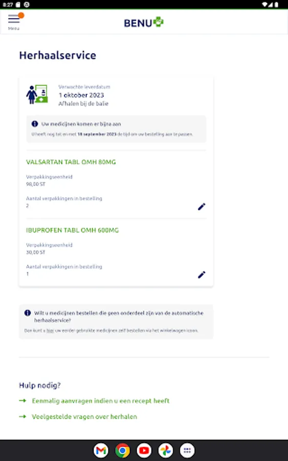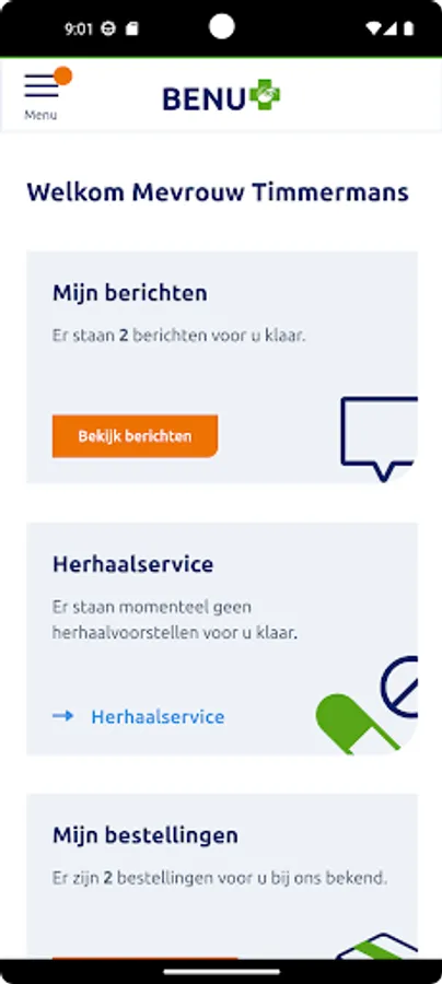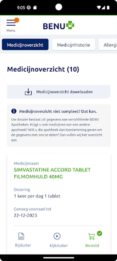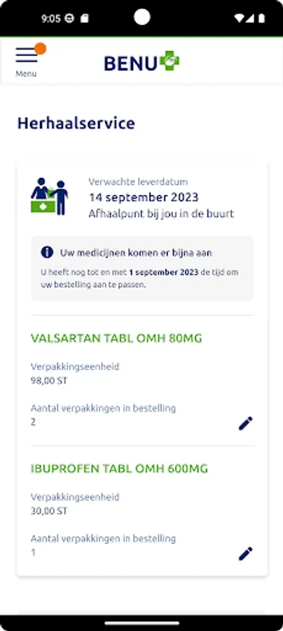 With My BENU you always have your medication file at hand, you can easily update contact details and easily approve a repeat proposal.