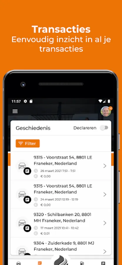 Transaction history: Insight into all your transactions. Handy for your own administration or to declare transactions with your employer.