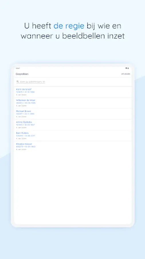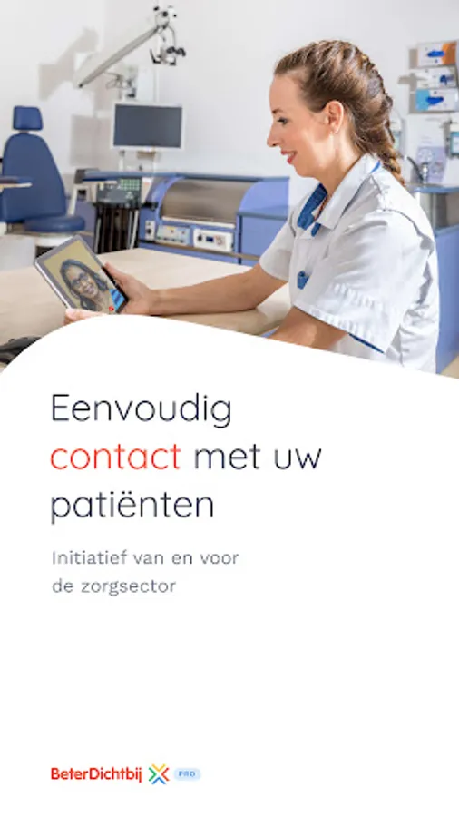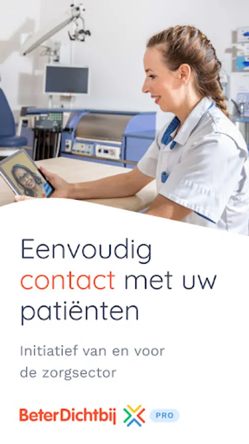 BeterDichtbij Pro has been developed especially for healthcare providers. This simple app makes it possible for healthcare providers to get in touch with patients, for example via a video call. BeterDichtbij Pro is an app from BeterDichtbij.