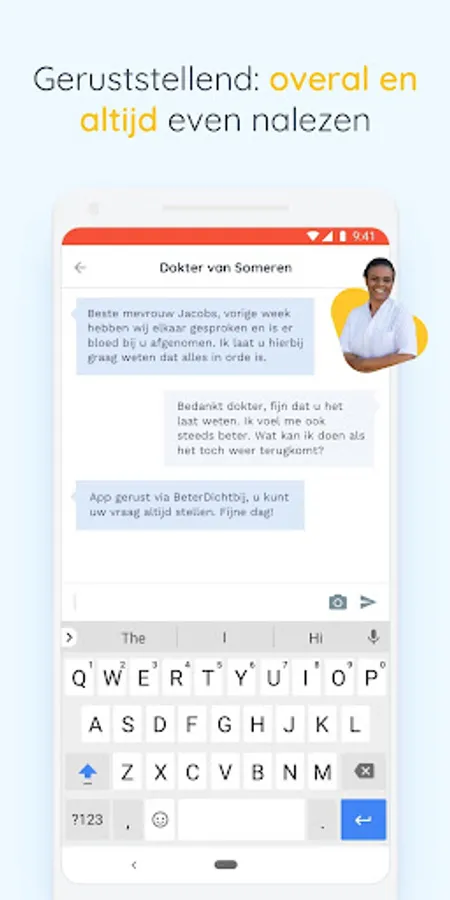 Making care easier for you. That is our mission with BeterDichtbij. With the free BeterDichtbij app you can easily and safely contact your own doctor or other healthcare provider from your own region. By sending a message, sharing a photo or video calling each other, for example.