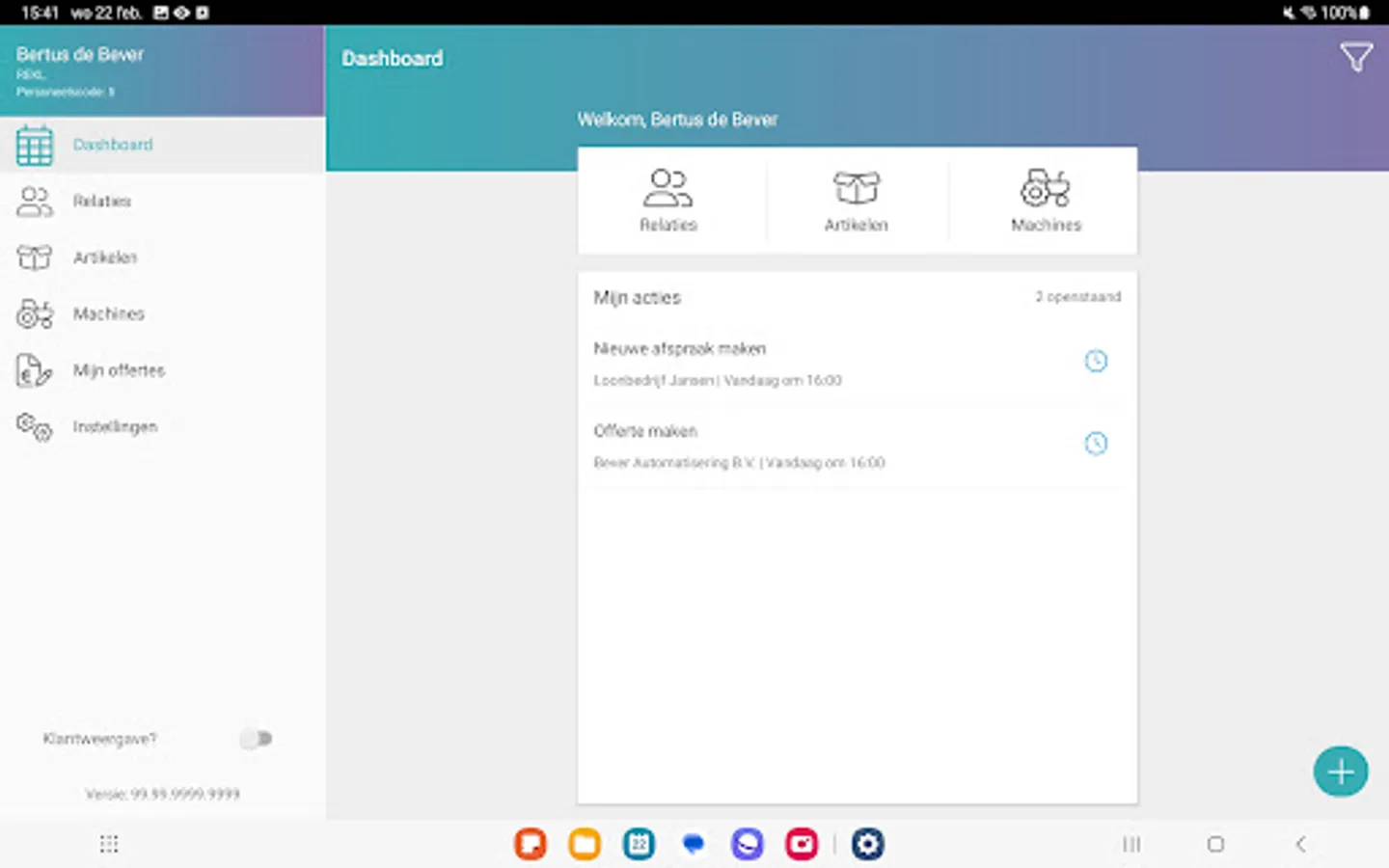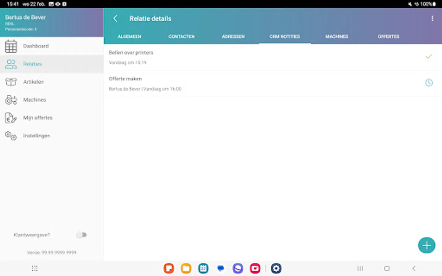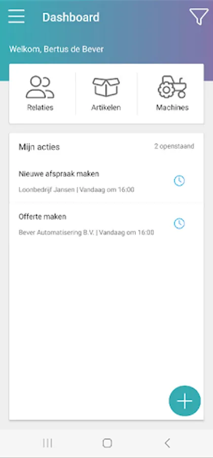 The Powerall CRM App offers you the most important data from Bever Automatisering's Powerall ERP package, even on the go. From CRM relationship characteristics to machine information and data from the article file. In addition, the Powerall CRM App offers the possibility to record visit reports and to record follow-up appointments for yourself or your colleagues.
