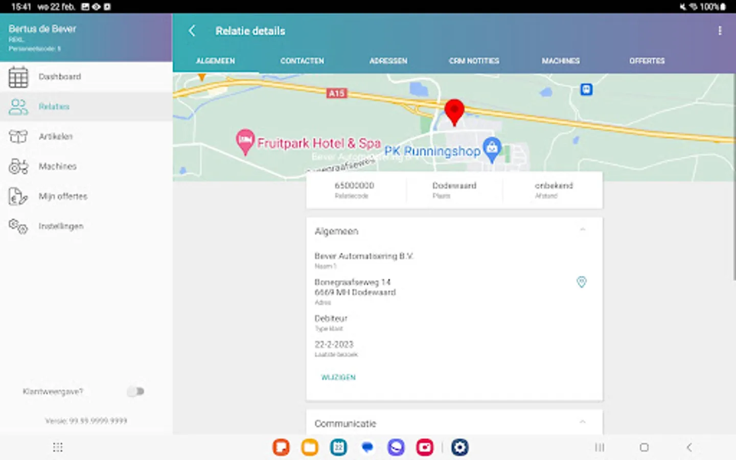 With the Powerall CRM App you also have all data about your customers at hand when you are on the go. Consult the CRM characteristics or the visit reports of previous visits. Call a customer directly from the Powerall CRM App or navigate there! Or do you want to be able to quickly see which customers are nearby? Moreover, you can quickly and easily see which machines the customer owns.