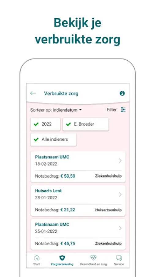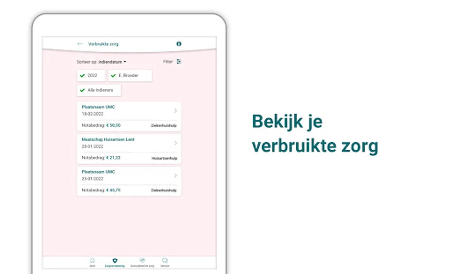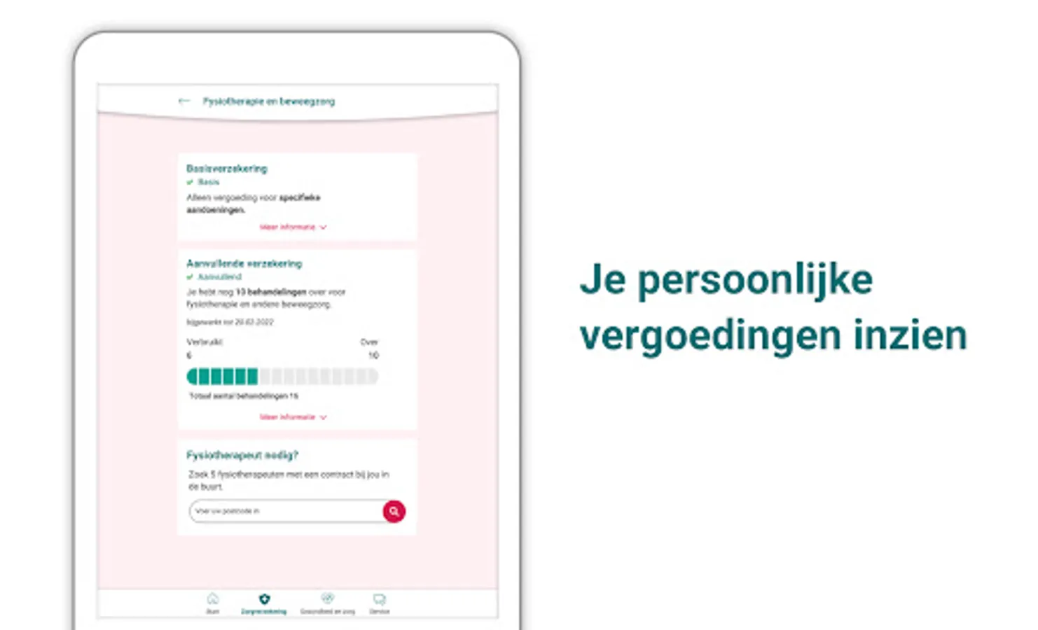 Are you co-insured on a policy? Then you can simply download and use the app itself. As a co-insured you do not have a mailbox and you will not receive any invoices from us. Are you the main insured yourself and do you have co-insured persons on your policy? Then you can easily arrange the healthcare matters for them via your own app.