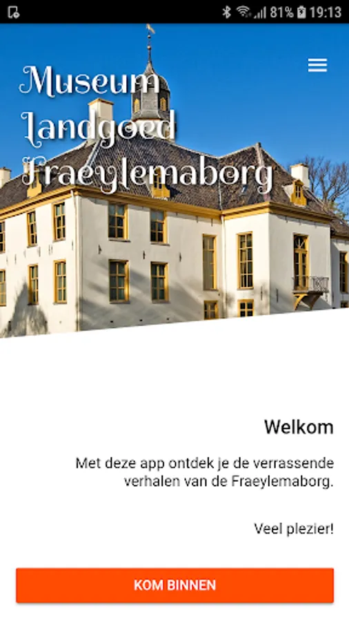 You can use the app in the deposit, but also at home. Anyway, be surprised. The Fraeylemaborg App is an initiative of Landgoed Museum Fraeylemaborg in Slochteren.