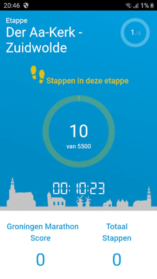 During the Groningen Marathon you run on a virtual route from Groningen to Uithuizermeeden. While you are running or running in your own environment, the app keeps track of your steps and moves forward on the virtual route. Along the way you pass through transit places, such as Bedum, Winsum and Uithuizen. In each place of transit you will be asked a question that relates to this place and / or top sport in Groningen. The intention is to take as many steps as possible within the specified period and to answer questions correctly.