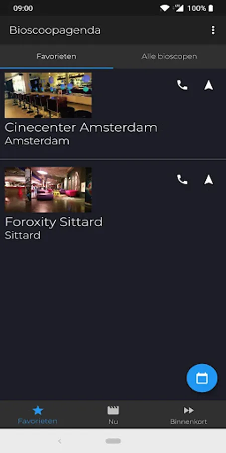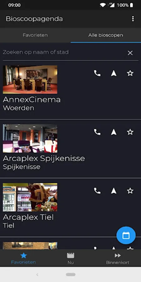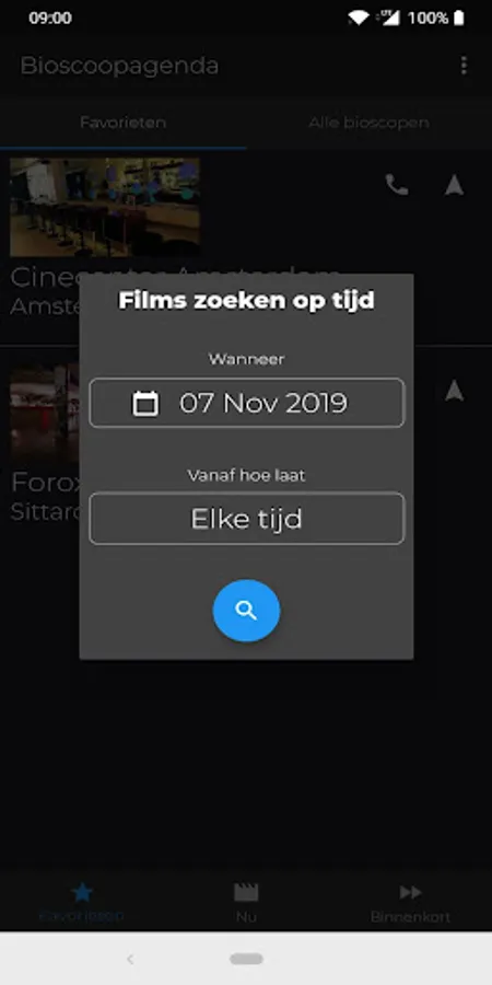 Choose your favorite cinemas, make a handy list of them and search for a nice movie by indicating when you want to go!