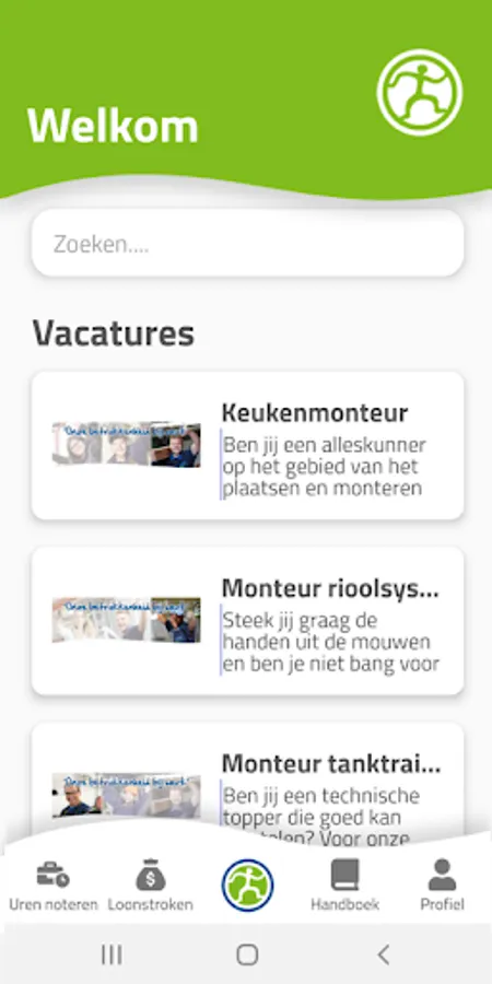 With this app it is possible to apply for vacancies, to view the manual and to declare hours.