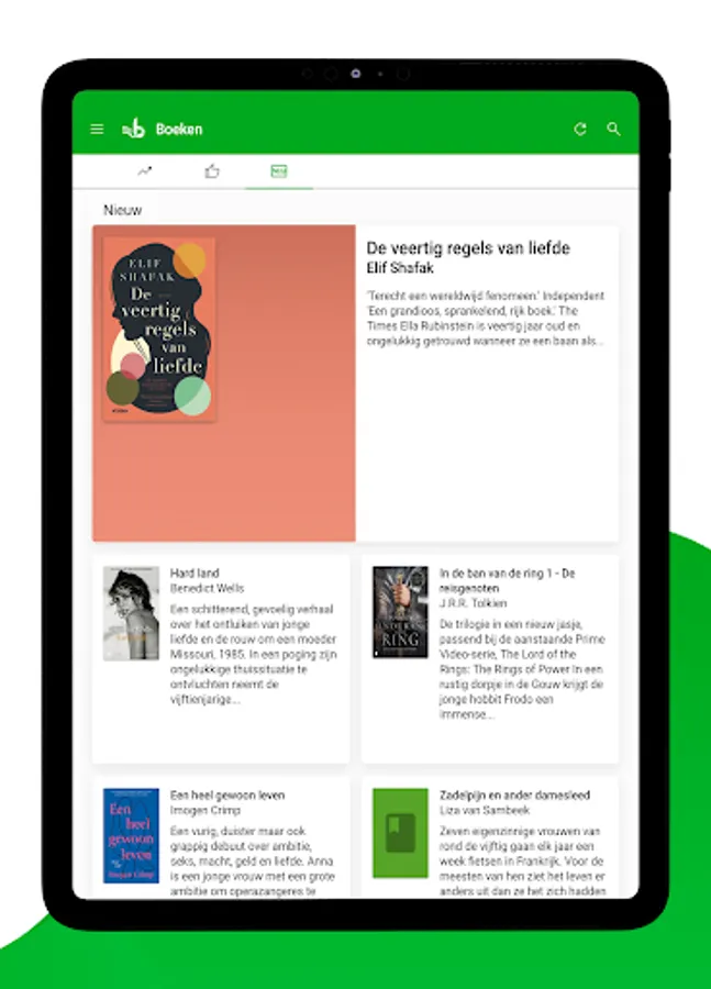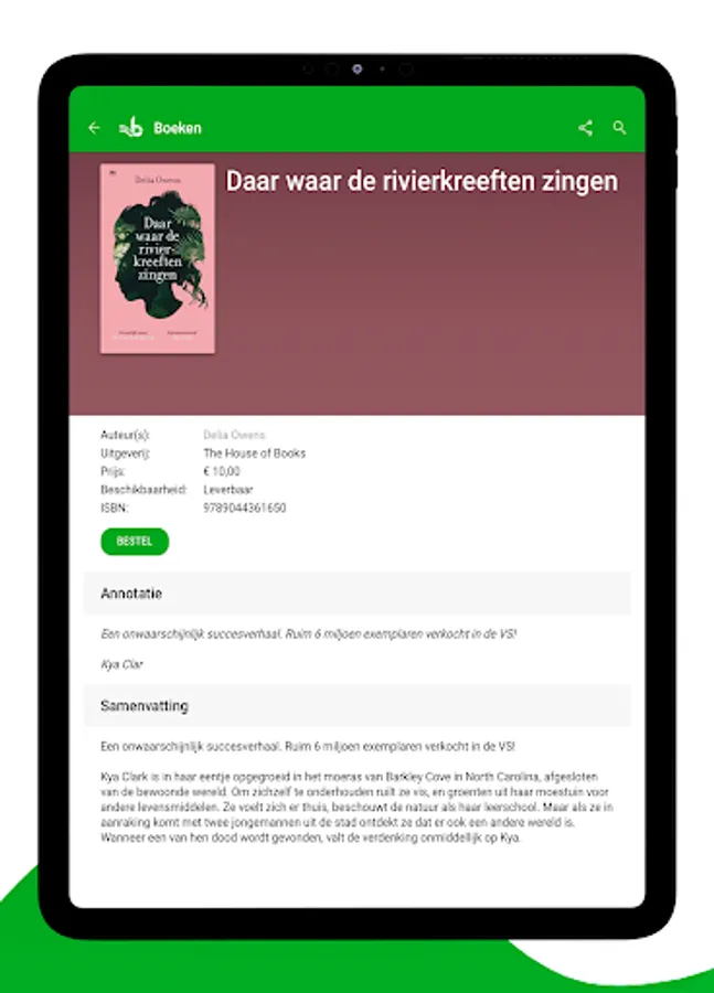 Tapping on an item from one of the lists will give you more information about the title. In addition, the entire Dutch literature catalog can be searched. The search options have been improved and expanded. This allows you - wherever you are - to search for your favorite authors or titles in seconds. And even more: the number of titles shown by a selected author has been increased in this update, so you don't miss a book from the oeuvre of your favorite author.