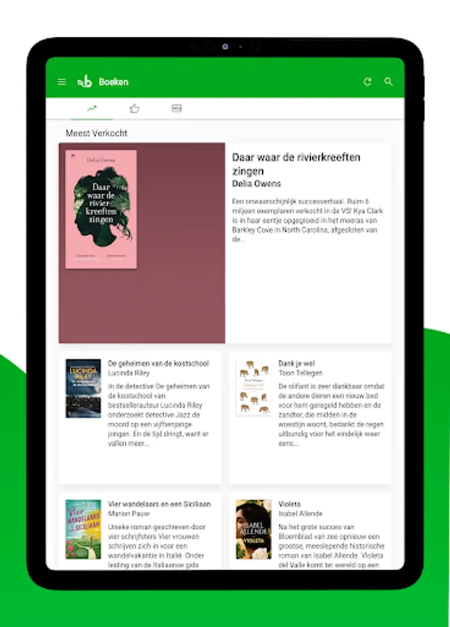 The app contains no less than 630,000 (+/-) book descriptions. With so much content, it can quickly become confusing for the user. To make the BoekWijzer app as user-friendly and easy as possible, we have chosen to make a selection in the form of book lists. These lists are made on the basis of information from national booksellers. The user is shown an overview of the 'most sold', 'top rated' and 'latest' books from the web shops. This way you are up-to-date in no time on what is happening in the literary world.