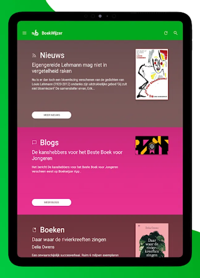 Books, books and more books. The BoekWijzer app is the app with all titles available in the Netherlands in pocket format. BoekWijzer brings rich literary information, together with the possibility to order books directly, within reach of your smartphone and tablet. The app provides access to the entire catalog of literature available in the Netherlands. In addition, you will find the most recent news from sources such as Literair Nederland and Boekenkrant. And on the BoekWijzer blog you can read interesting literary blog articles.