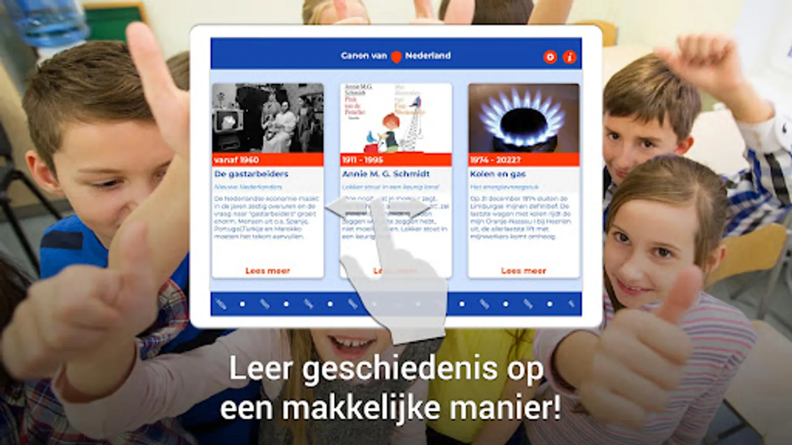 Everything becomes clearer with the Canon van Nederland app. Discover the Canon of the Netherlands at school and at home on your tablet. All you need is an internet connection.