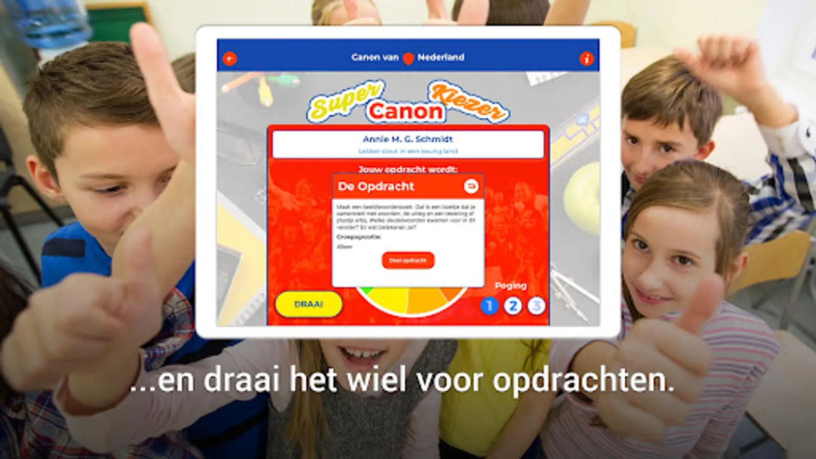 The Canon van Nederland app now includes a child lock. This allows an adult to prevent a child from changing reading levels or accessing external links without permission. To unlock the lock, a calculation must be solved. How often the permission must be given can be adjusted in the settings.