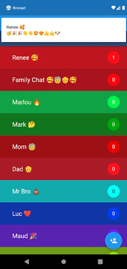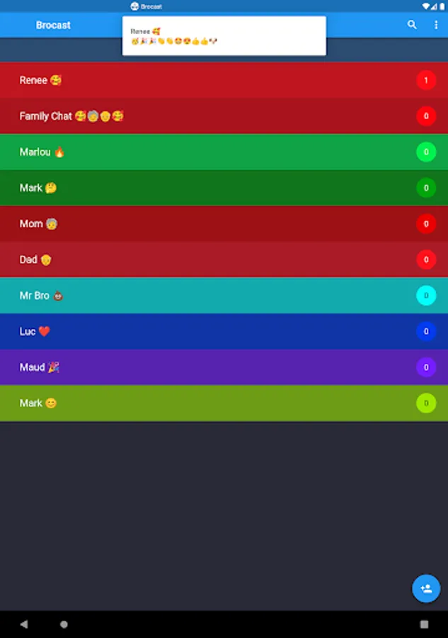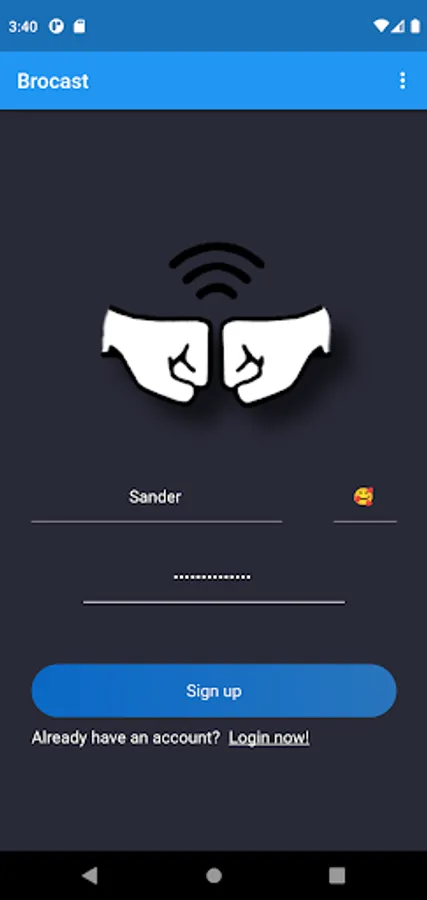 Create a Brocast account with a corresponding bromotion which best describes who you are and what you're feeling. No email or phone number needed! Brocast uses an internet connection to send and receive messages. Add your other bros and start communicating on a whole new level with Brocast!