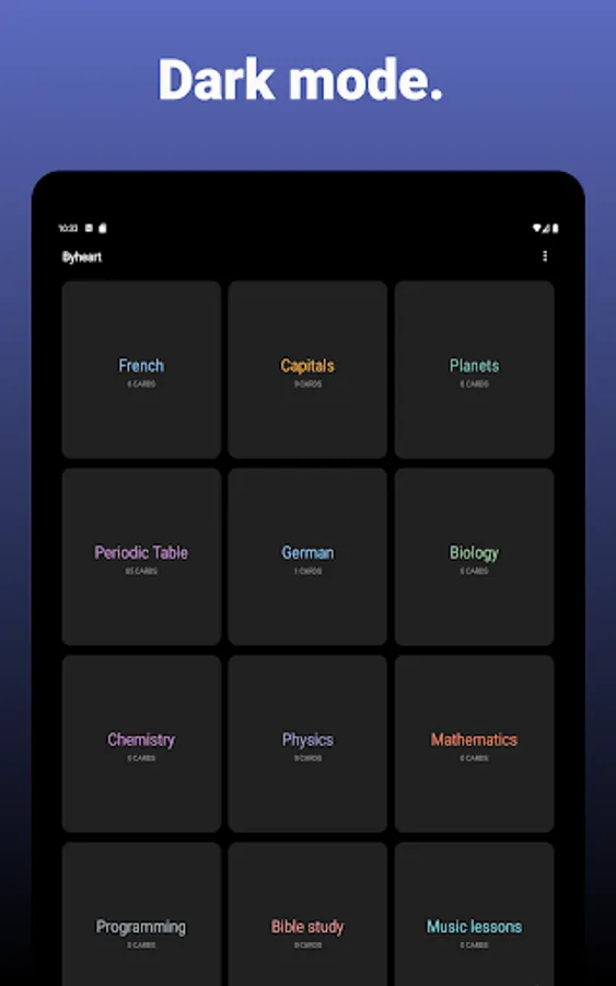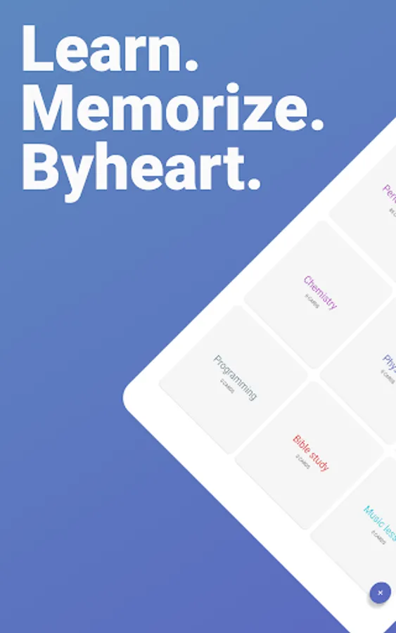 Study, memorise and learn anything you want Byheart. Create flashcards to attain mastery of a topic of choice. It's simple, effective and free.