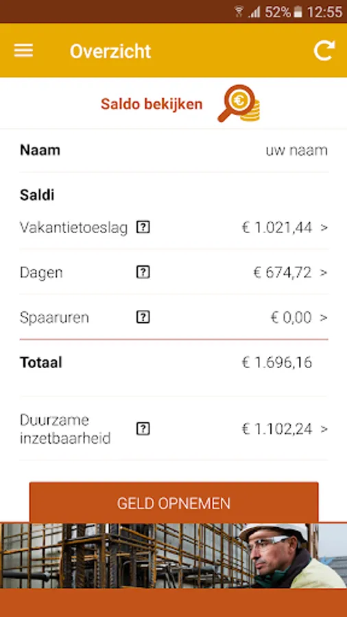 Construction site employees are obliged to Time Savings Fund. UTA employees can participate voluntarily. Through this app can get a competitor access to its balance at the Time Savings Fund.