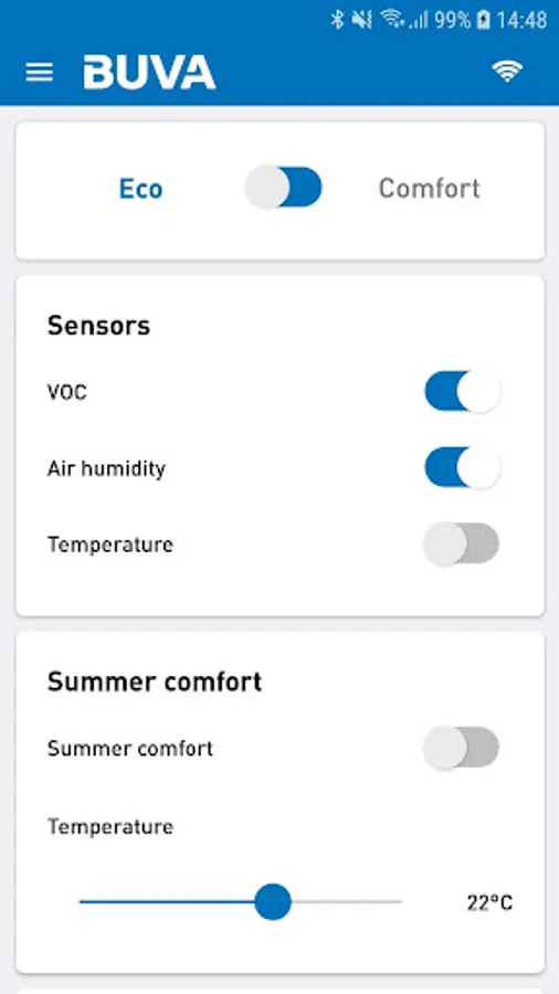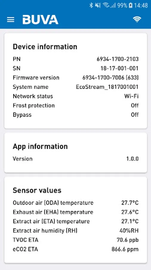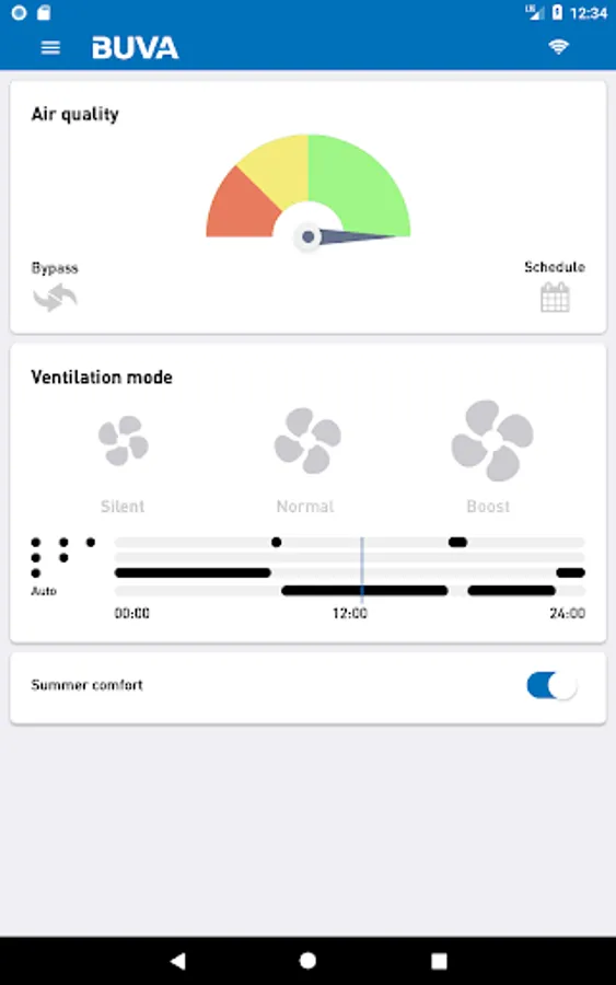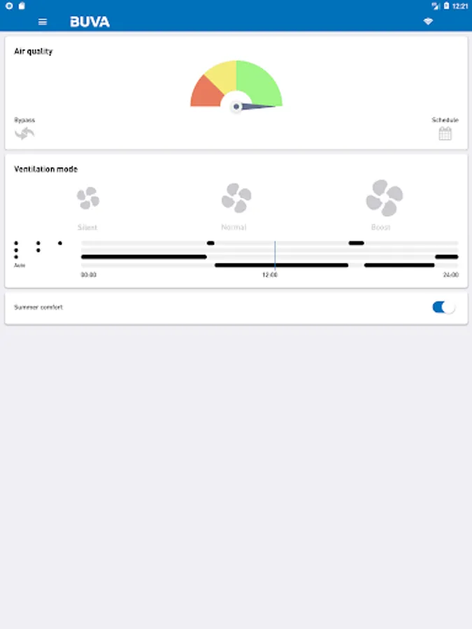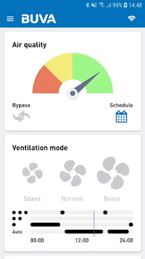 A revolutionary, intelligent and modular balanced ventilation system that takes advantage of heat recovery, that is what the BUVA EcoStream heat recovery unit is all about. The EcoStream app enables extensive control of the heat recovery unit. The app is equipped with an installer mode for setting up, adjusting and maintaining the EcoStream. In the user mode, a schedule can be programmed with a specific ventilation level per day and time. The resident can also check the air quality and the operation of the heat recovery unit.