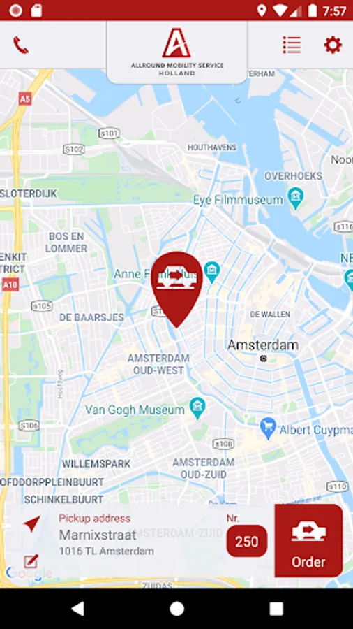 You order the taxi with the Allroundholland App.
