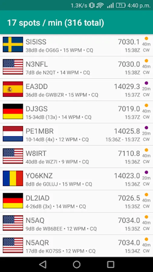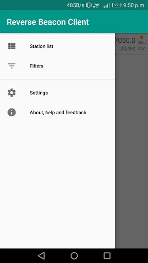 This app makes realtime RBN data available to your Android device. It is possible to filter on bands, modes (CW, PSK, RTTY) and speeds (BPS and WPM).