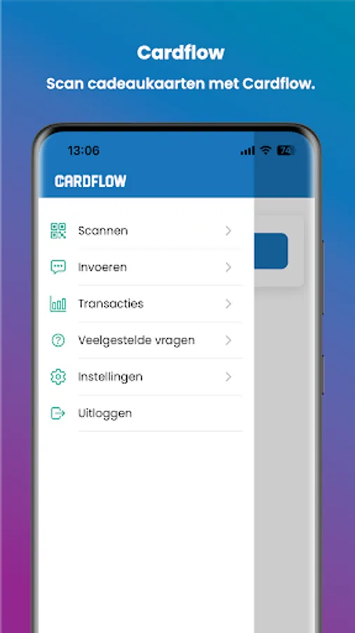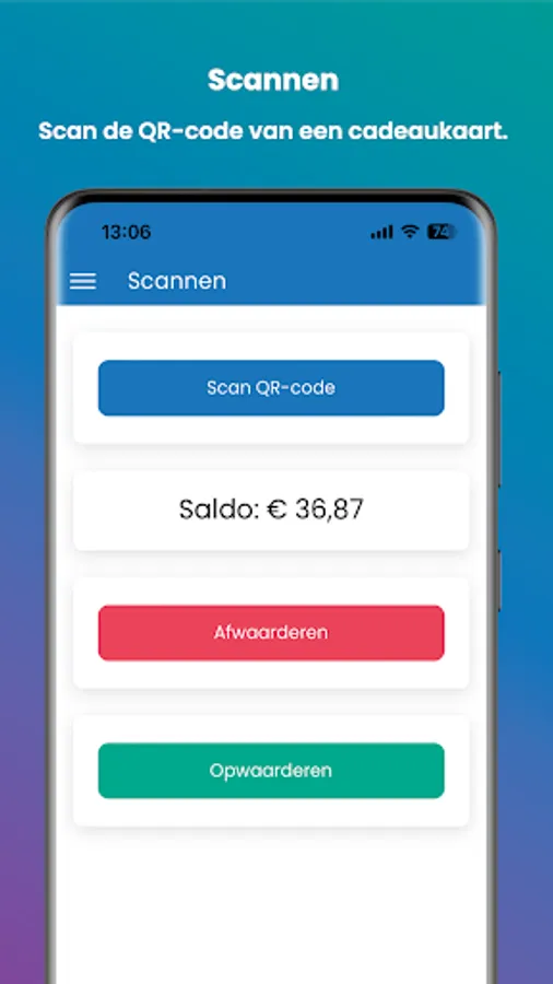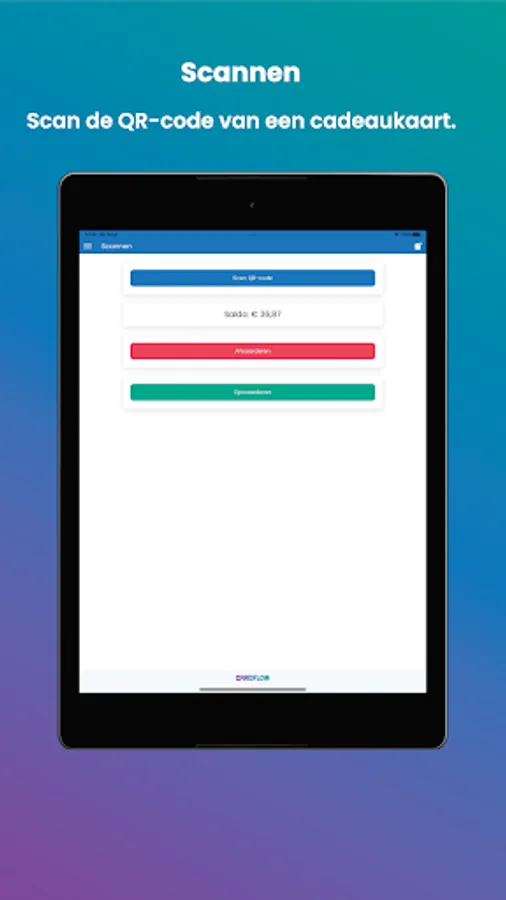 Cardflow is an app that allows you to top up and down value gift cards. Simply scan the QR code on a gift card. In addition, it is possible to view your transactions.