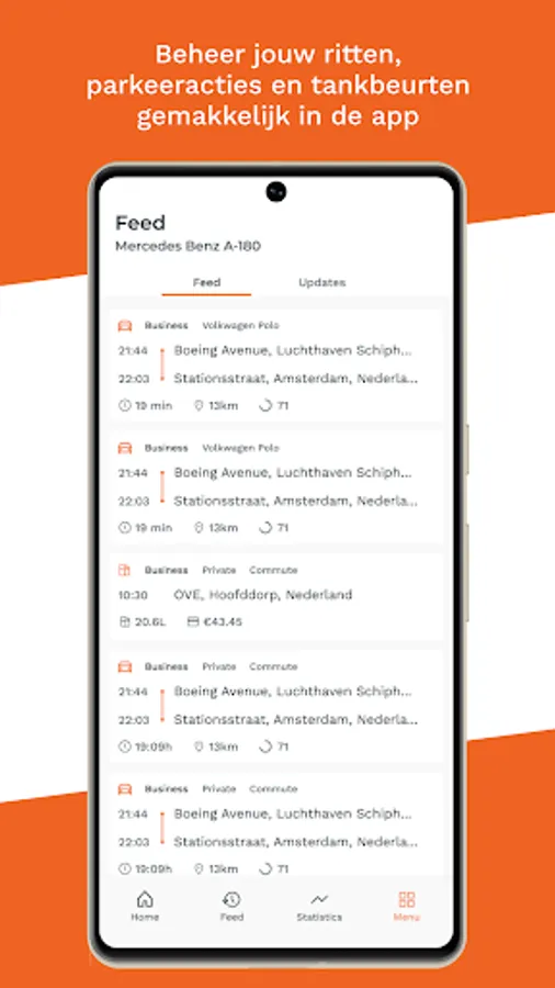 - Manage your journeys, tank movements and parking actions in one overview
