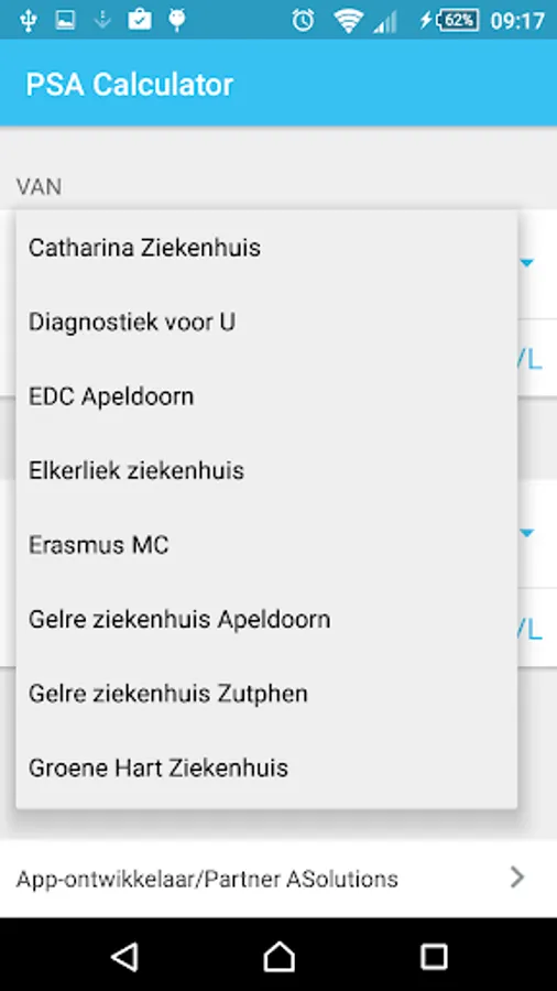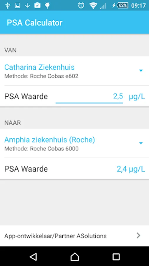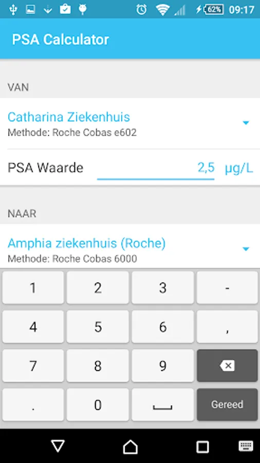 With PSA, the calculator may include the PSA concentrations of 29 different institutes are compared with each other, including the Santeon laboratories and most university hospitals.