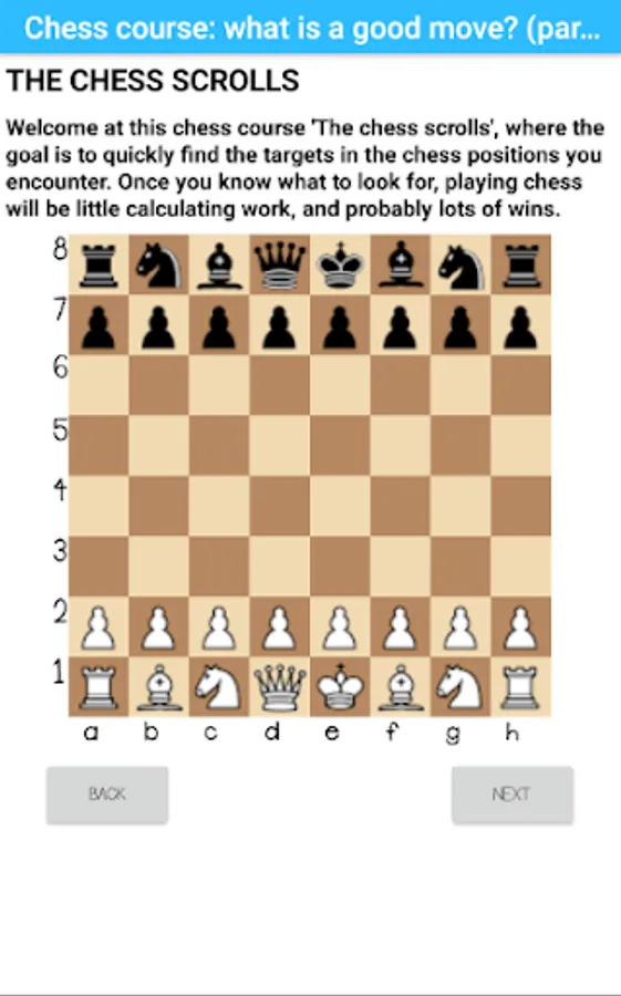 The course shortly repeats, by practical example, the SCROLLS system. This helps you to view chess positions like a pro. To find the hidden treasures in a chess position.
