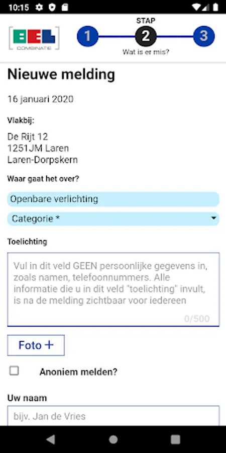 Smart Reporting shows what is in your area on the map. Click on an icon and all related information is already entered. Easy and fast. You can also click anywhere on the map and make all kinds of notifications. Smart Reporting helps you easily through all steps.