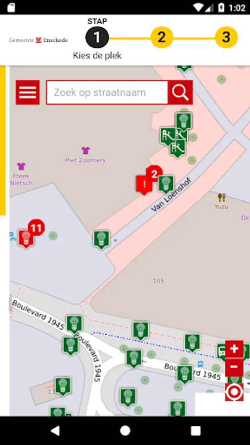 Smart Report already shows on the map what's around you. Click on an icon and all related information is already filled. Easy and fast. You can also click on the map anywhere and do all kinds of messages. Smart Report helps you easily through all the steps.