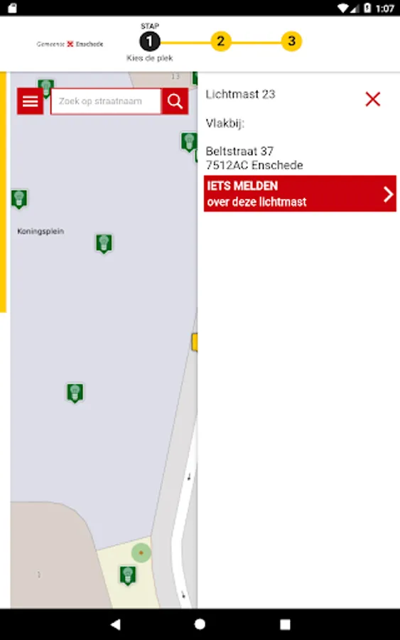 With Advanced Report you are sure that your message is properly registered with the municipality. At any time you can view the current status of all messages on the map.