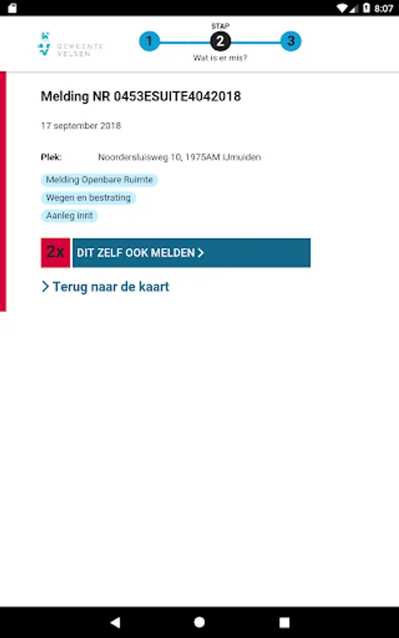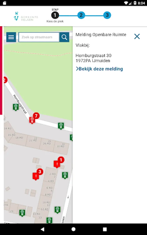 With Smart Reporting you can be sure that your report is correctly registered with the municipality. You can view the current status of all notifications on the map at any time.