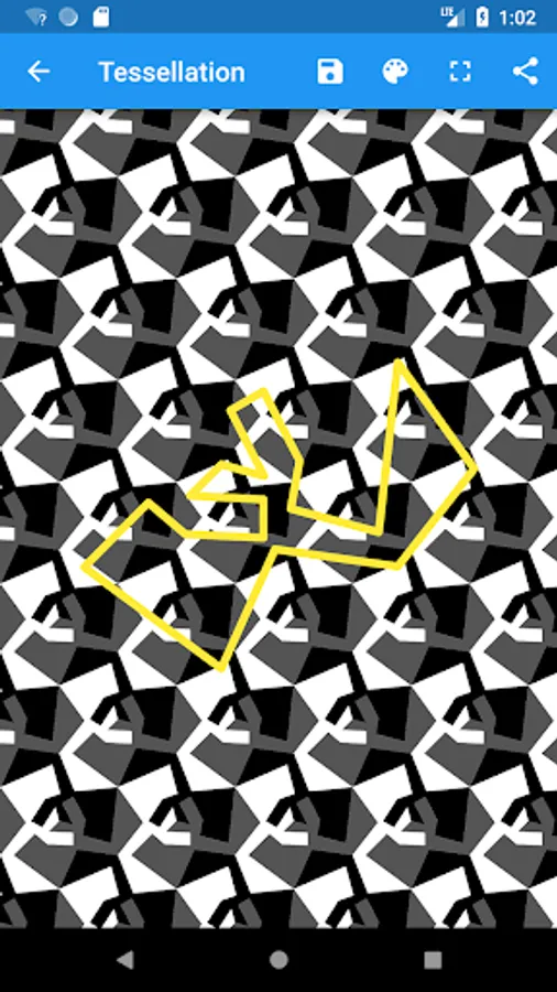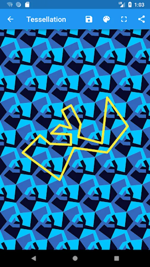 In this app, you choose from a variety of tessellation shapes such as triangle and square. You begin with that basic shape. You then get to change the shape by "drawing" with your finger. It's less like painting and more like drawing with a ruler. (Or, if you like, it's less like pixel drawing and more like vector drawing.) Of course, you do not have complete freedom to draw whatever shape you want because the shape must tessellate. The app does an excellent job of maintaining the tessellation as you draw. You also have control over the colors. It's really quite entertaining.