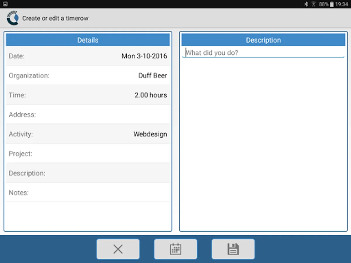 - Very flexible hourly rates: per employee, per customer, per activity, per project, per day of week, etc.
