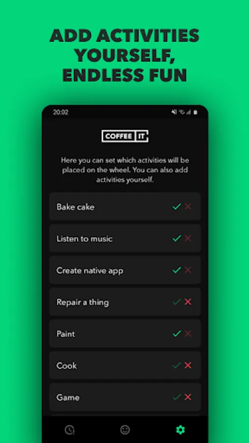 Curfew shows when the Dutch curfew starts and ends with a countdown. It also contains a wheel of fortune with fun and (mostly) educative evening activities, some of them being what we like to do best at Coffee IT! With this activity inspiration you no longer have to be bored at home while you cannot go outside. You can disable activities that you do not like and add your own ones.