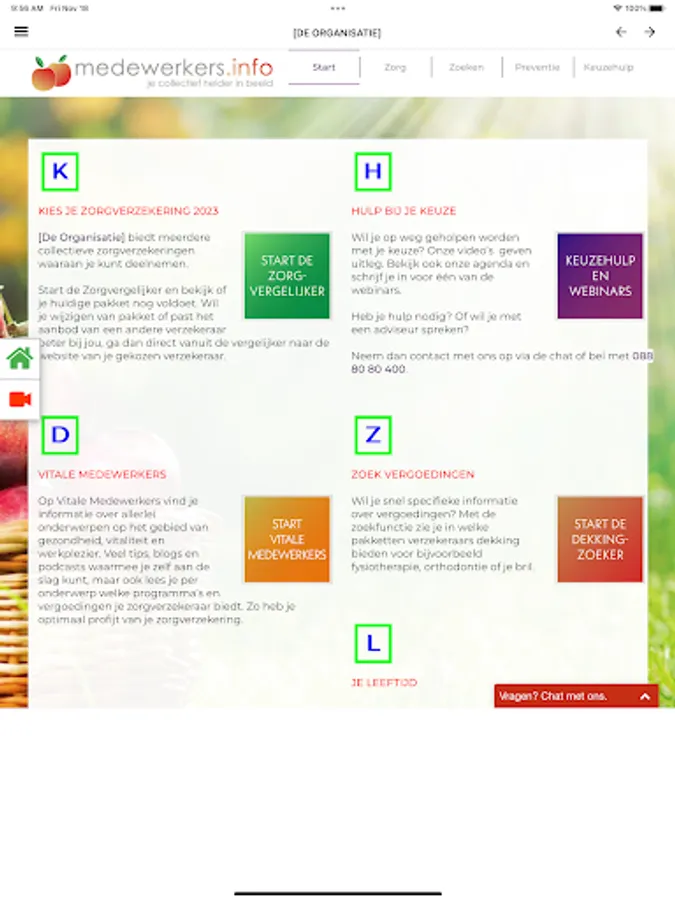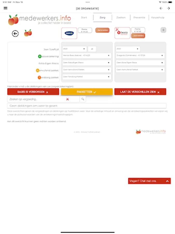 With the healthcare portal app you can compare premiums, coverage and conditions of all group health insurance policies via your employer on your phone or tablet. You need an employer code to activate the app. You can find this on employees.info in your employer's healthcare portal.