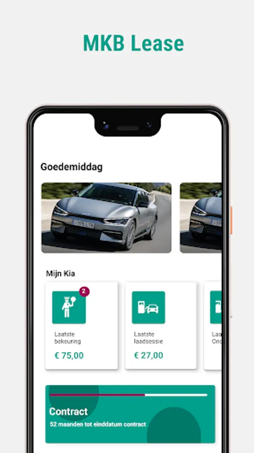 Understand what is and is not in your contract, retrieving vehicle data, but also think of making an appointment serving swapping the snow tires, the start and stop parking declare tanking or information about what to do in case of damage or theft request. This, and more, are all easy to find in the app. Obviously, in a pleasant and user-friendly manner, in view of our slogan; MKB Lease, always clear!