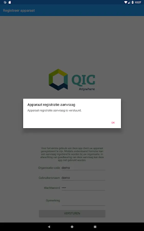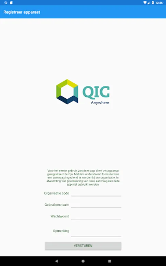 This app is to unlock QIC for use on the move. Before first use your device must be registered by your organization. A request for this can be done using the app.