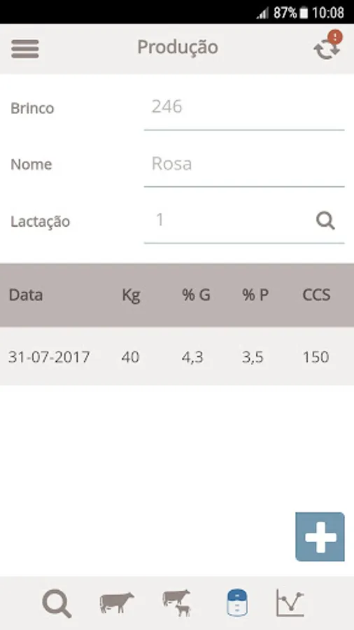 3. Production: with a single push of the button milk recording data and SCS can be added to the app.