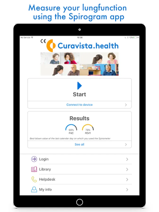A Curavista health app, fit to be used in combination with the MIR Spirobank Smart.