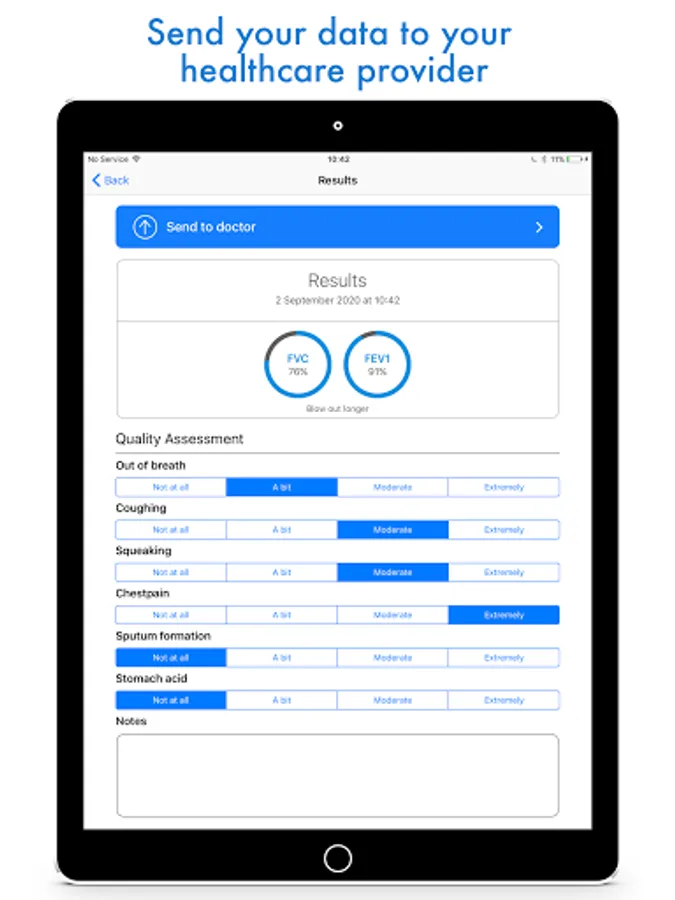 This app is meant to be used with the MIR Spirobank Smart, making it possible to conduct spirometry at home and sending the results to the Curavista.health platform. Based on the authorizations that you have set on the platform, this will enable healthcare providers to assess your results and monitor your progress.