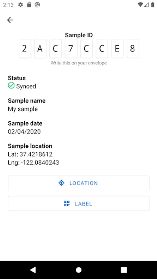 This app makes it possible to collect crop samples and helps you with sending it to the laboratory. When you use this app it is not necessary anymore to write detailed information down, but it will be stored and send to the laboratory which can easily process the sample, without the probability of making writing mistakes or having missing information. The only important thing is that the app is used while taking the app and the unique 8-digit sample ID is enclosed with the envelope.