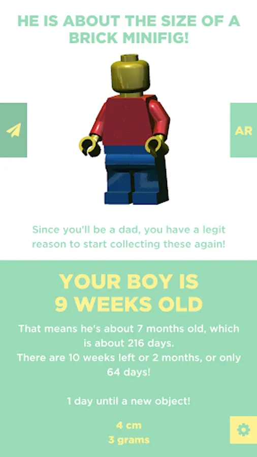 Did you know your 9 week old kid has the same length as a Toy Brick minifig? Or that your 33 week old baby has the same size as a pizza? Hello Daddy-O features over 30 items that you can check out in AR (Augmented Reality), every week reveals a new object.