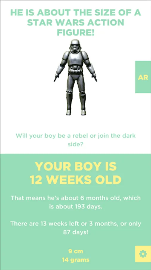 Congrats you're about to become a dad! Keep track of your baby's size and compare it to super cool objects in augmented reality (AR)!
