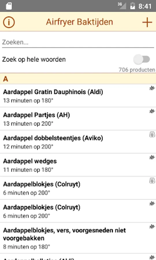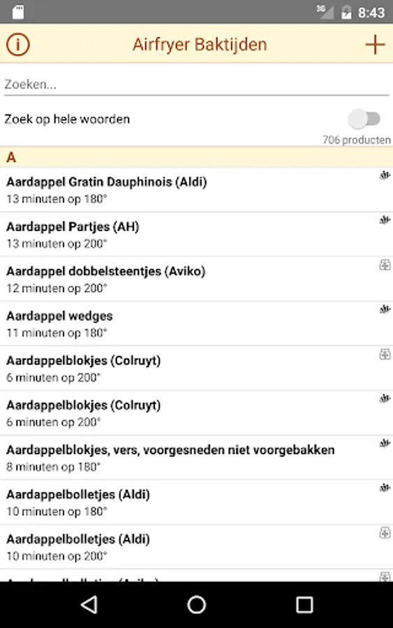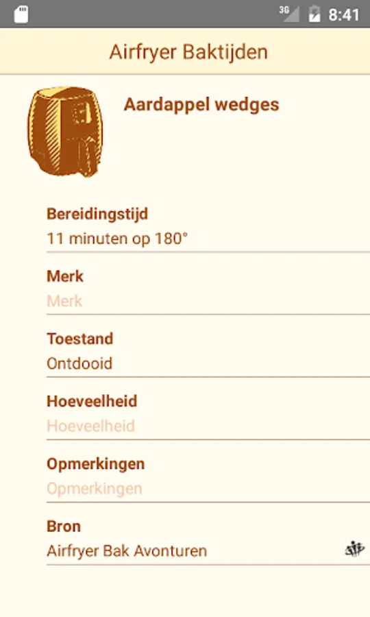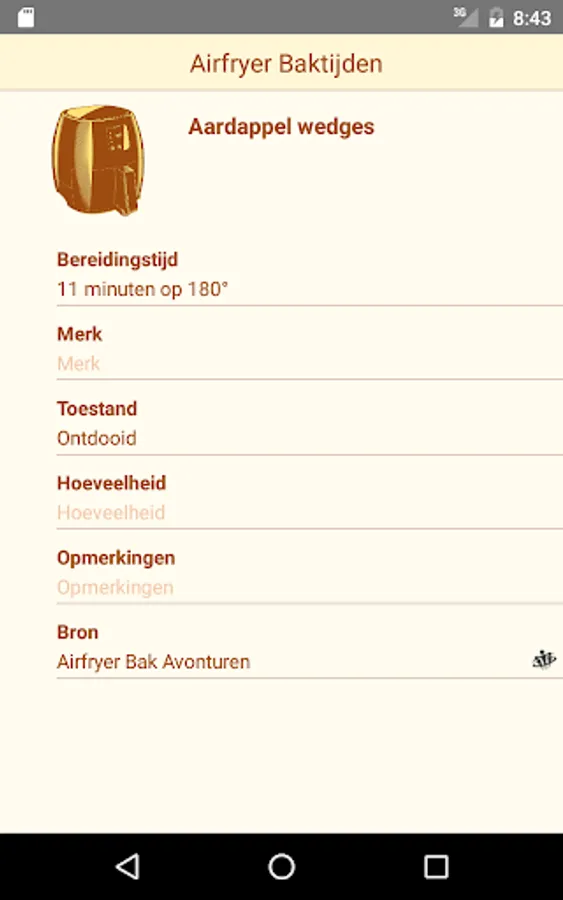 Baking times the Airfryer app lists cooking times of different products. You yourself can add products with baking times on the app.