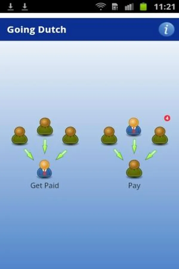 As the one that needs to get paid (the Payee) you start the Going Dutch app and tap the Get Paid icon.