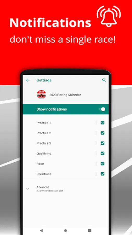 For more information, see the free version of "Racing Calendar 2023": https://play.google.com/store/apps/details?id=nl.deepapp.RaceCalendar