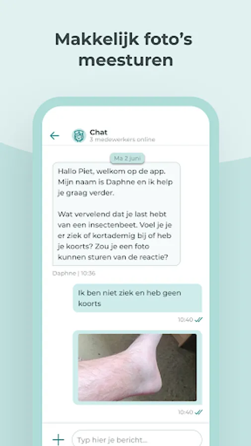 With this app you can easily ask a question about your health. You can also send a photo. You will then receive a quick and expert response from a team of medical nurses from Medicinfo *. If necessary, an appointment can be made with an online doctor via the app. You will get in direct contact with your doctor via a secure video connection. The information that you share is confidential. De Friesland, owner of the app, does not see your data and these are only available for MedicInfo.
