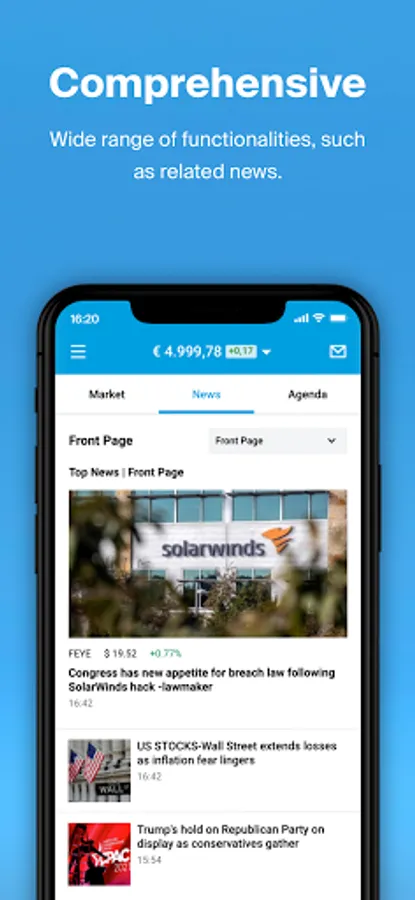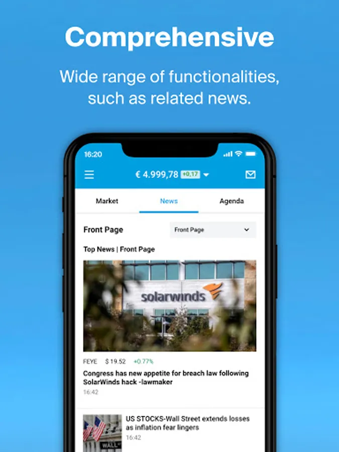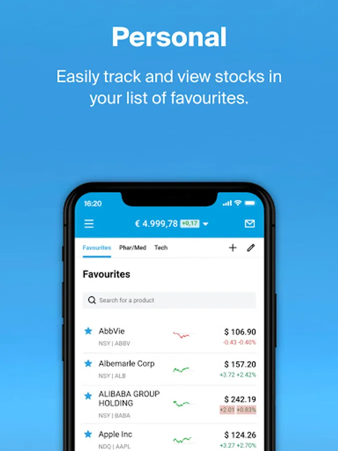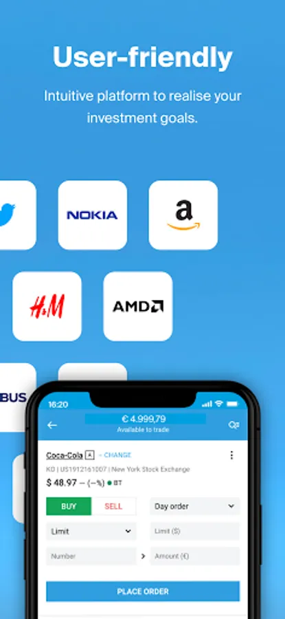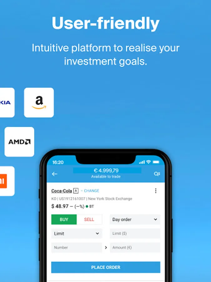 DEGIRO was granted the Best Mobile Share Dealing Award at the Investment and Wealth Management Awards, hosted by the Financial Times and Investors Chronical, due to the app's user-friendly experience and the abundance of trading opportunities available. The free investment app will always give you quick access to your portfolio so you can monitor its performance. Easily trade stocks, trackers, funds, options, futures and more, anytime, anywhere. The app will also show you relevant news and announcements about your investments..