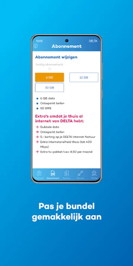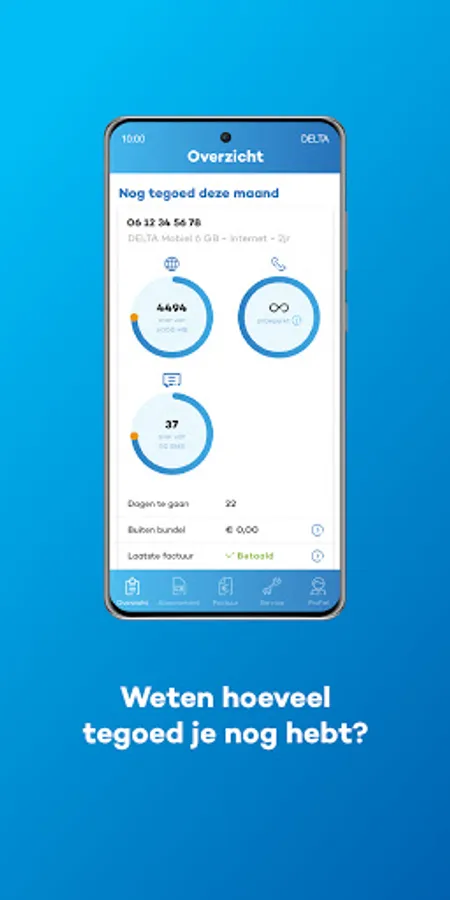 With our Mobile app you can see all the details of your usage at a glance. And if you want to adjust your bundle because you need more data, you can also easily arrange that.