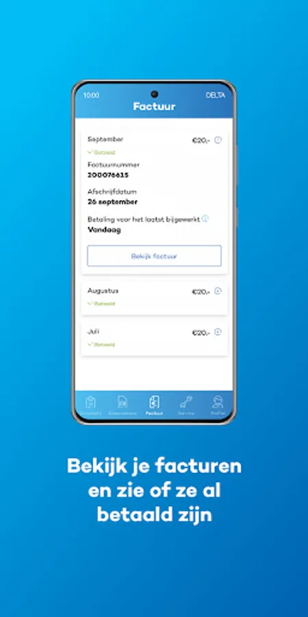 Can't remember whether you paid your last invoice? View your latest invoices, payments and specifications in the app.